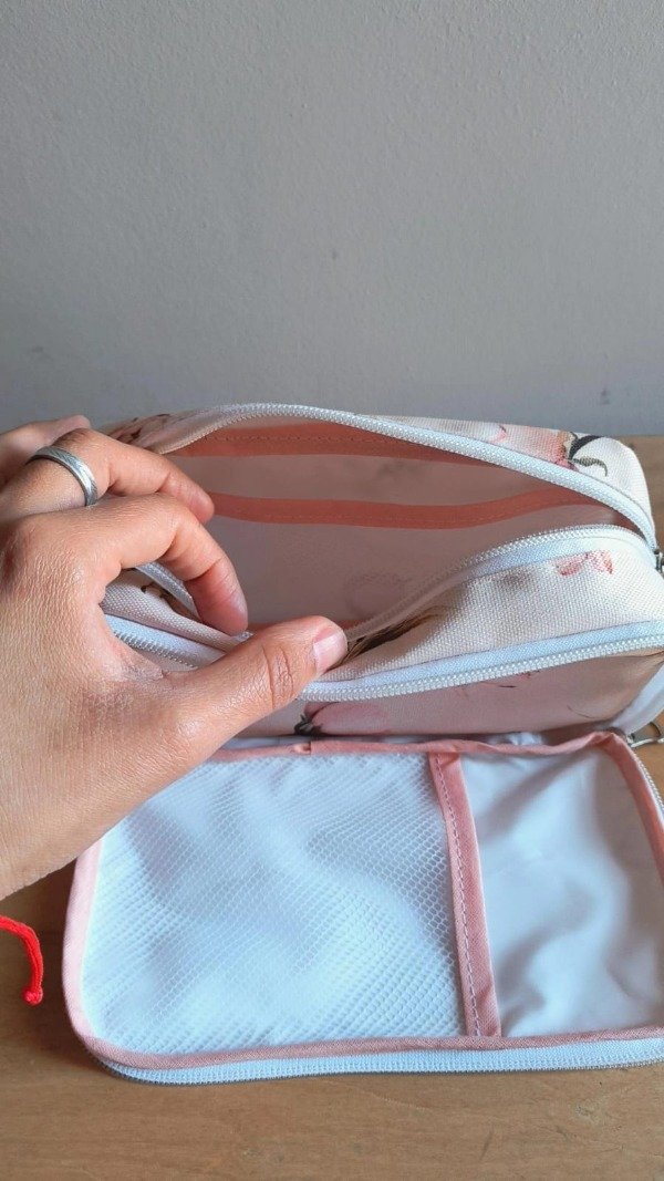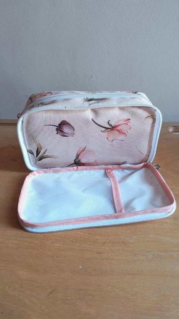 La podés usar como cartuchera o como neceser para llevar le maquillaje, las brochas, etc