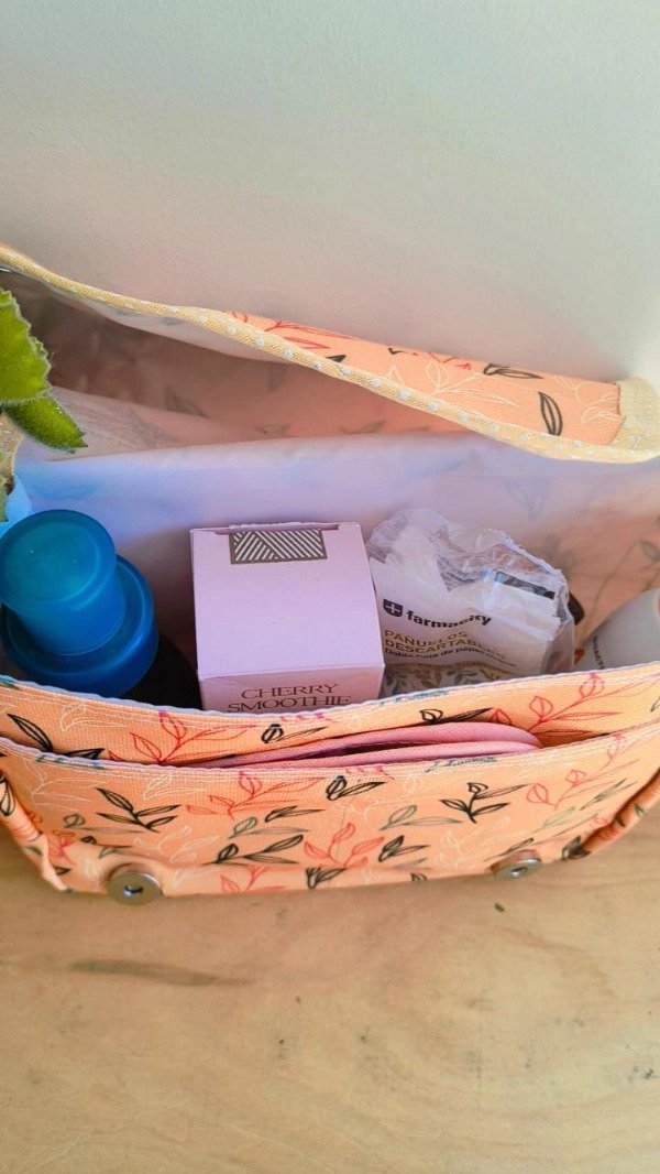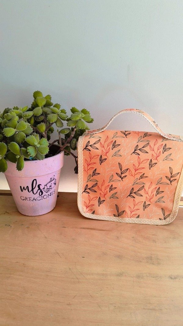 Tiene manija para facilitar su transporte y se cierra con broches imán.